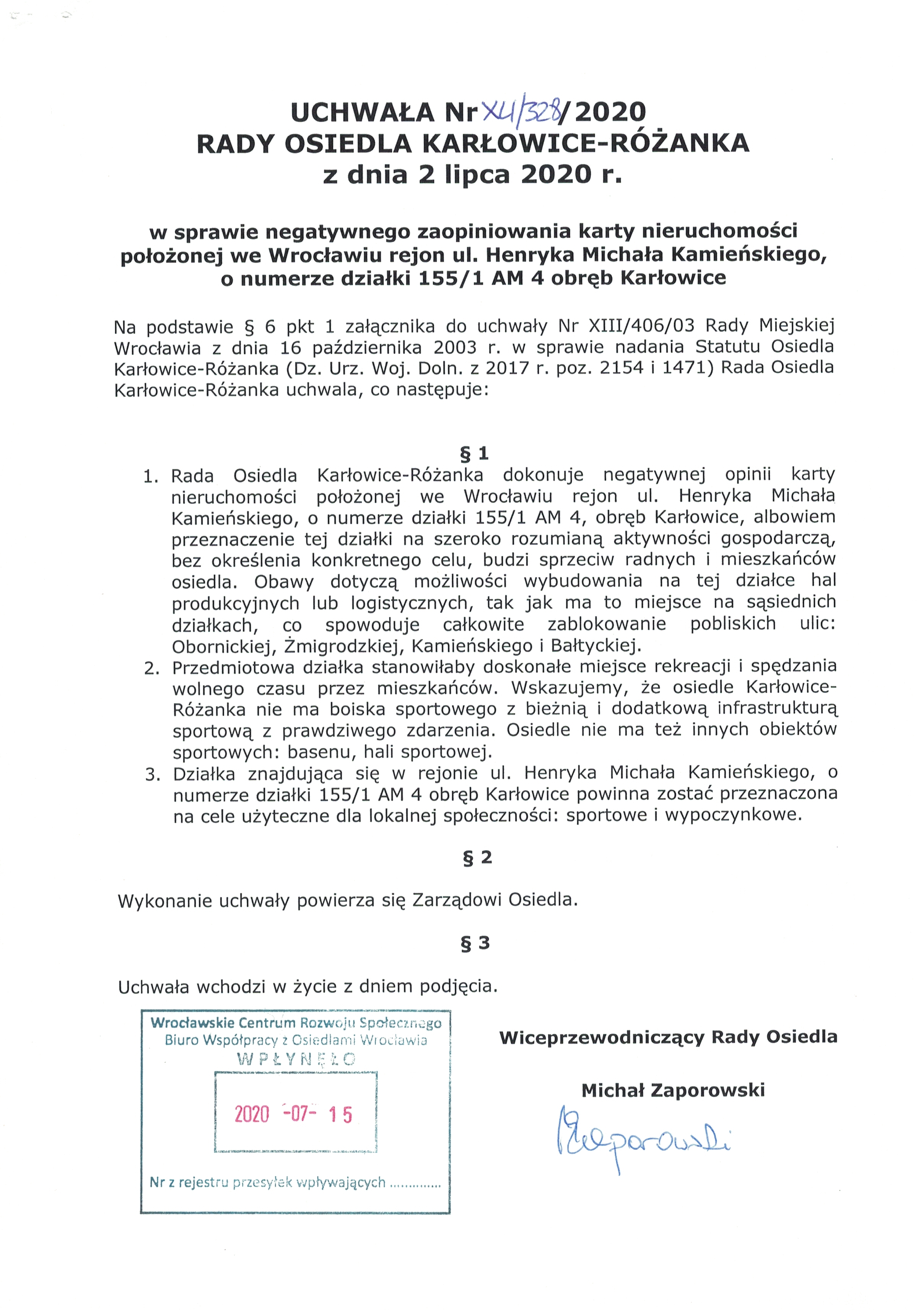 Uchwały Rady Osiedla