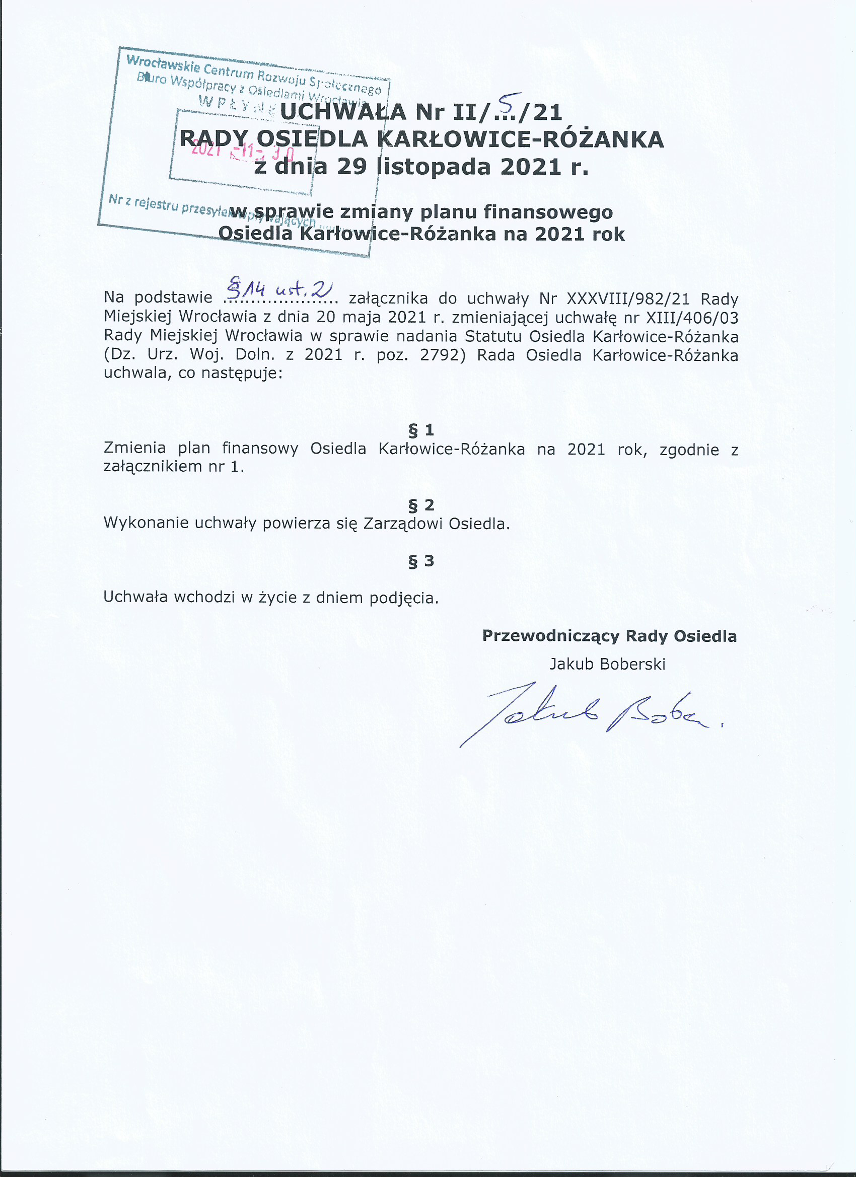Uchwała nr I/2/21 z dnia 9.11.2021