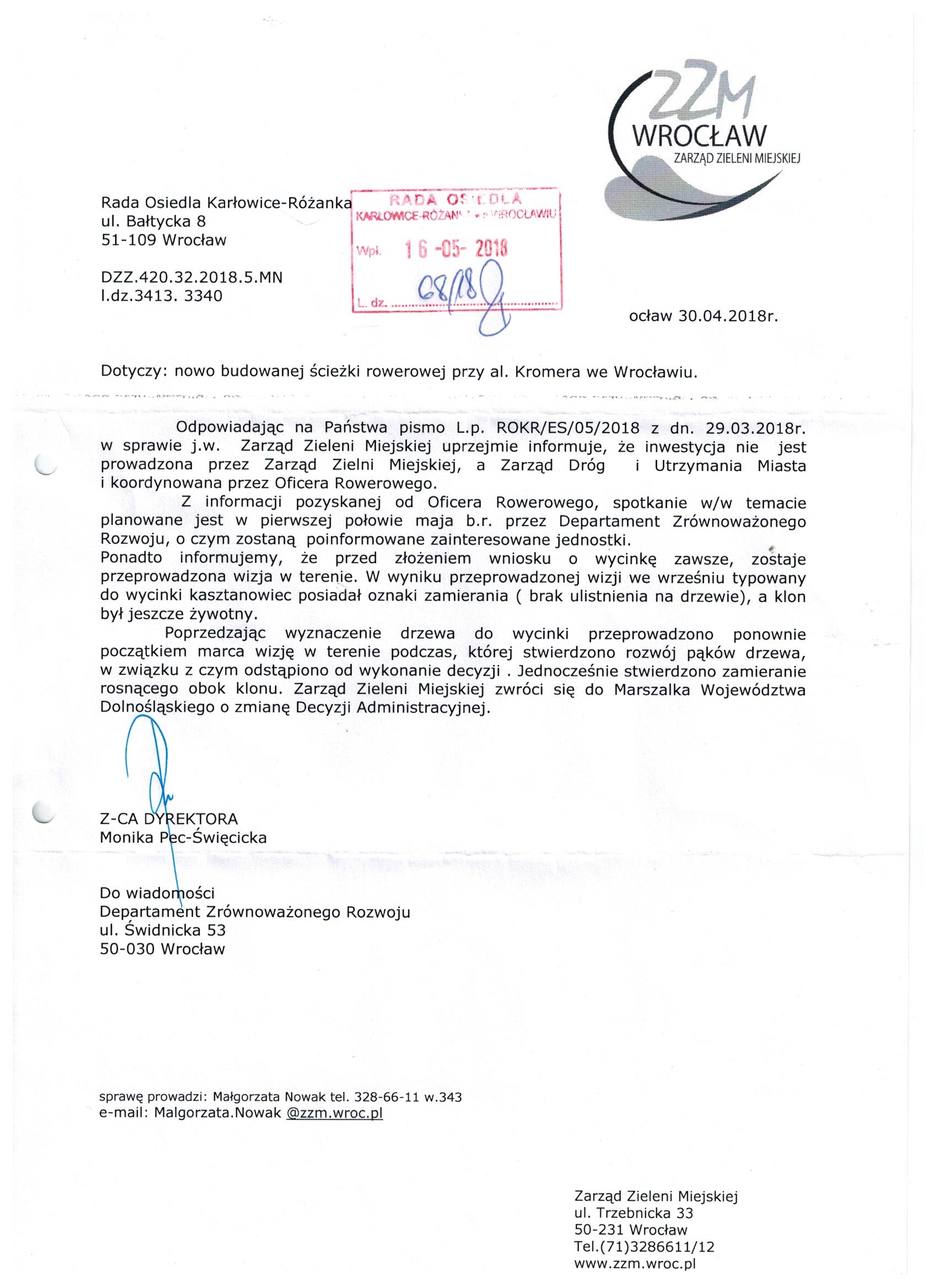 pismo ZZM nasadzenia