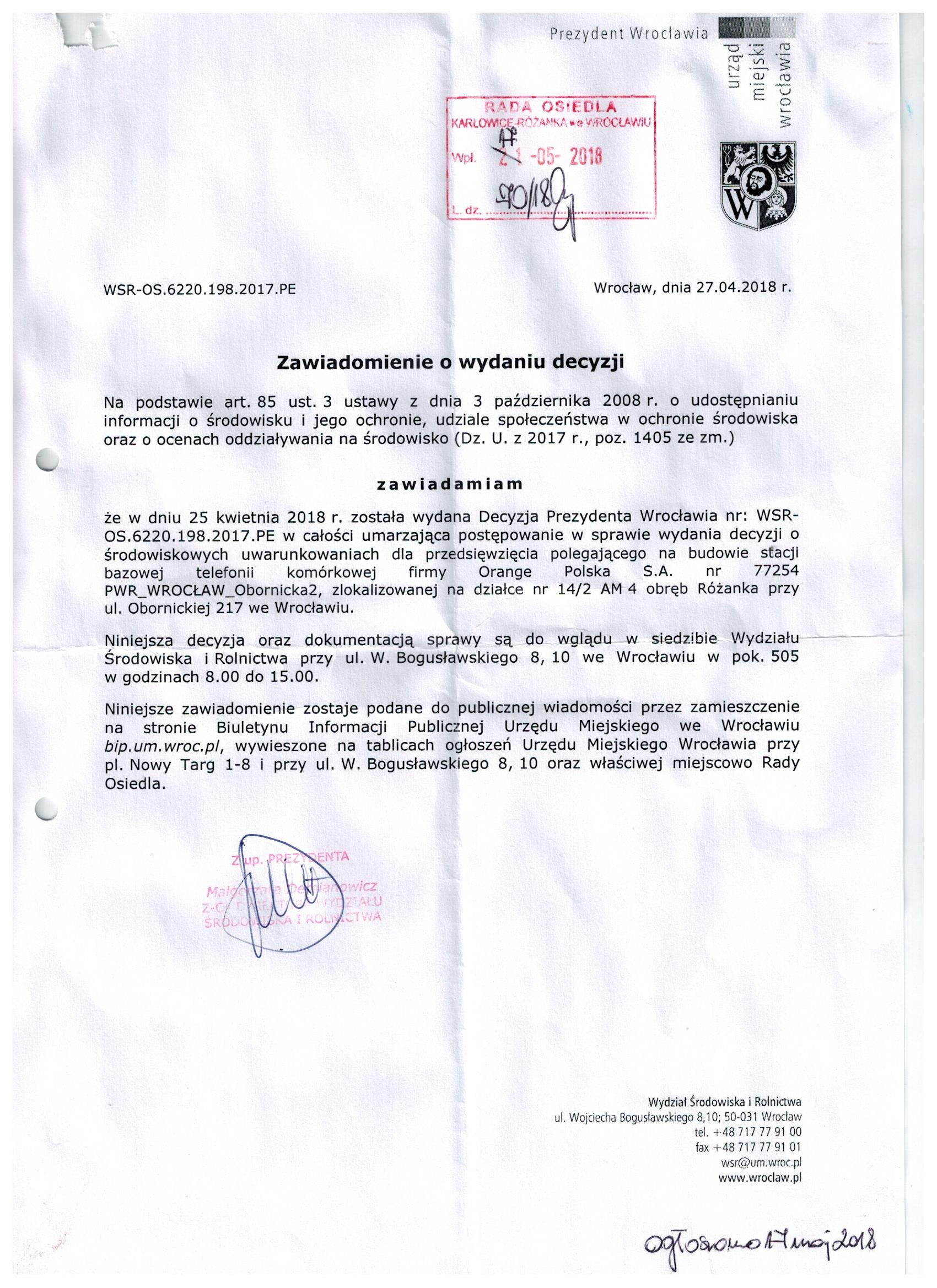 Obwieszczenie środowiskowe